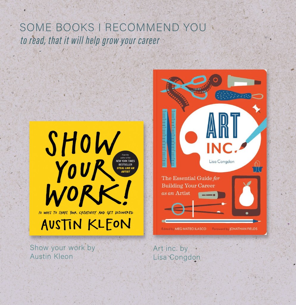 Art Inc. is filled with tips and tricks on how to promote your work and how to find different outlets for your art pieces. What I love about this book it’s that is not for just illustrators it’s for everyone involved with art so keep it on your list because throughout the whole book you will see amazing interviews with other artists and links seccion for different topics like taxes, art galleries and more.
