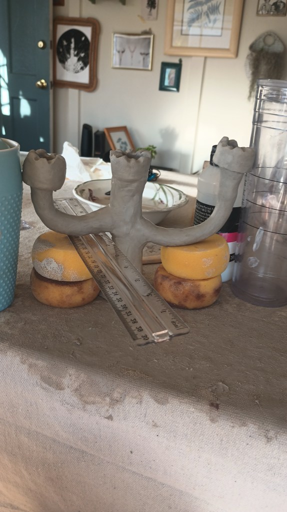 You may also want to see what it looks like with paint and glaze. Well, let me tell you… we used air dry clay, and my candle holder broke literally just when my husband touched it.