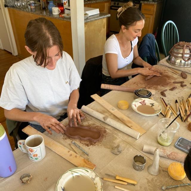 My friend Jenna, does art events at her house every month. Last year, in mid-November, she invited us to play and have fun with clay. It was my first time and I loved it (the texture, plasticity, getting messy, molding and patience)(Also the fact that we are all women creating (what a gold moment)), these were sensations that led me to the decision to experiment more and sign up with her to study in the ceramic program in the fall of this year.