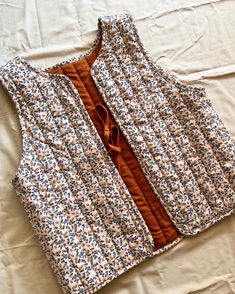 Adicional, aprendi por mi misma a coser, el primer proyecto que hice fue arreglar un par de panatalones con la maquina de coser de la abuela de Garrett y luego me lance a hacer un chaleco para el cumpleaños de una amiga….todo el proceso fue muy lindo, hubo varios días donde no sabia que hacia y otro donde todo fluía. Si alguna vez has cosido en tu vida puedes saber que comienzas pensando que todo sera rapido pero que en el camino debes resolver muchos problemas, y me encanto el sentirme retada y darme cuenta de como mi mente resulolvia cada situación.