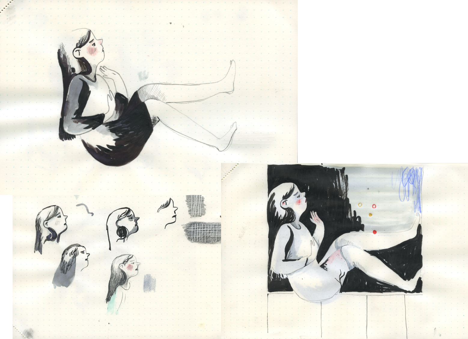 Check the creative process below. Technique: Gouache, inks, pencil, and collage on Bristol paper